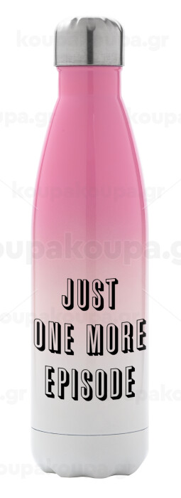 JUST ONE MORE EPISODE, Metal mug thermos Pink/White (Stainless steel), double wall, 500ml