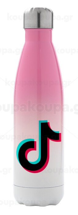 tik tok, Metal mug thermos Pink/White (Stainless steel), double wall, 500ml