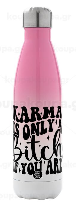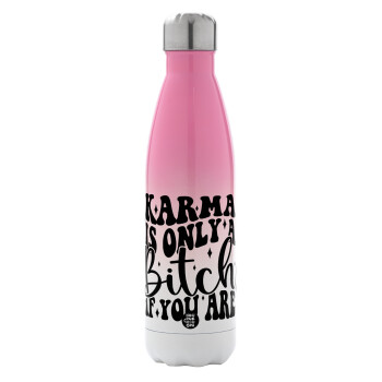 Karma is Only A Bitch if You Are, Metal mug thermos Pink/White (Stainless steel), double wall, 500ml