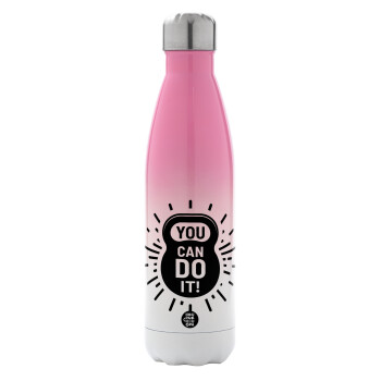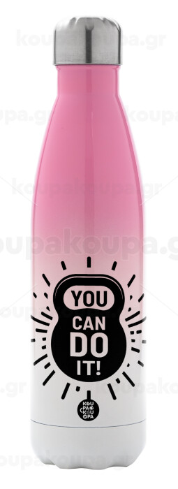 You can do it, Metal mug thermos Pink/White (Stainless steel), double wall, 500ml