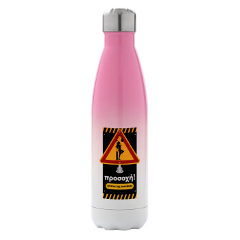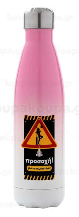 Προσοχή Γίνεται της πουτ.νας, Metal mug thermos Pink/White (Stainless steel), double wall, 500ml