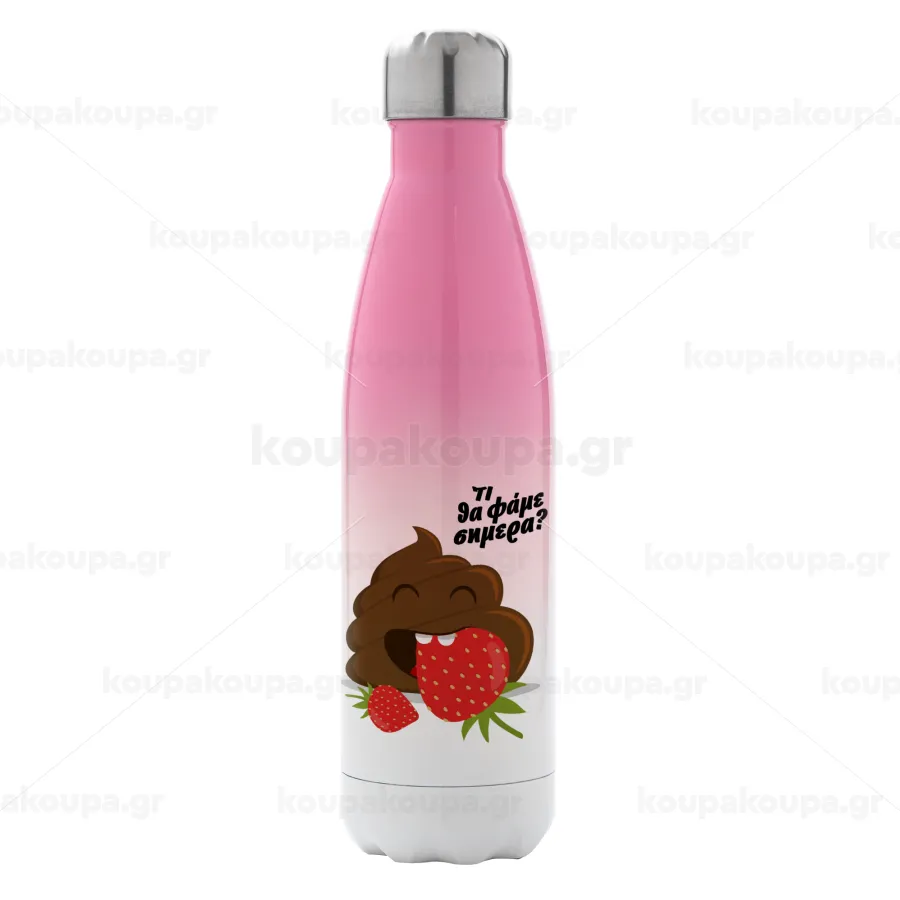 Τι θα φάμε σημερα???, Metal mug thermos Pink/White (Stainless steel), double wall, 500ml