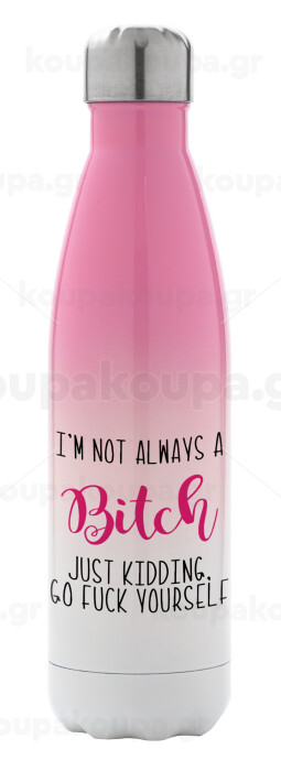 I'm not always a bitch, just kidding go f..k yourself , Metal mug thermos Pink/White (Stainless steel), double wall, 500ml