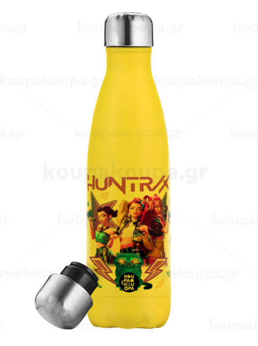 Huntrix K-pop series, Yellow Stainless Steel Metallic Thermos, double-walled, 500ml