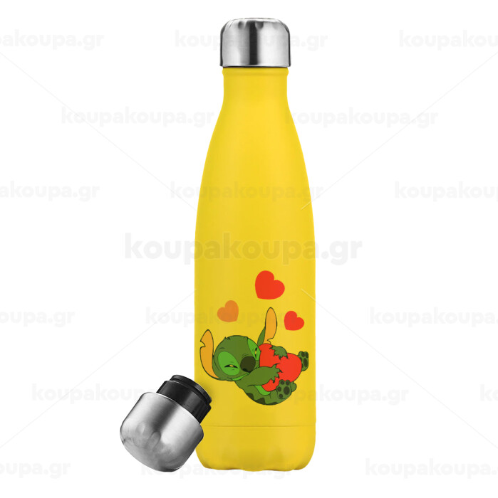 Lilo & Stitch hugs and hearts, Yellow Stainless Steel Metallic Thermos, double-walled, 500ml