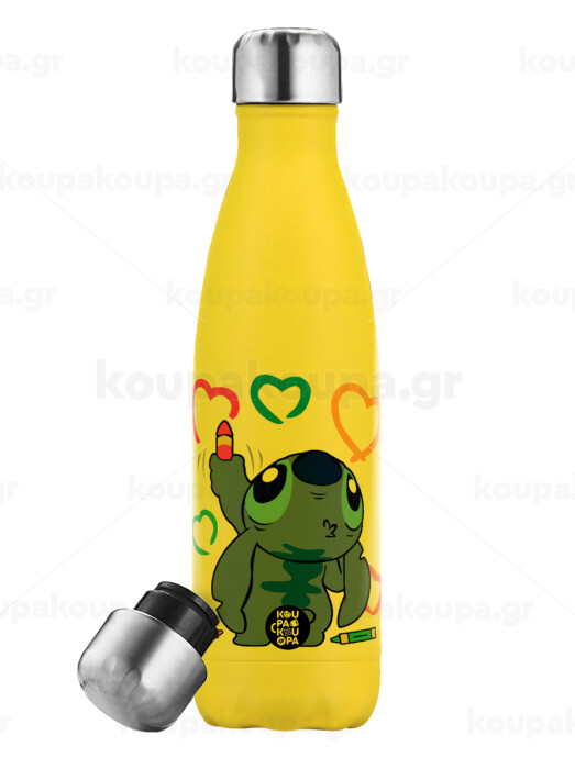 Lilo & Stitch painting, Yellow Stainless Steel Metallic Thermos, double-walled, 500ml