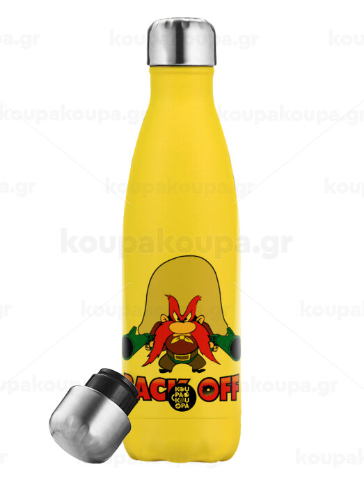 Yosemite Sam Back OFF, Yellow Stainless Steel Metallic Thermos, double-walled, 500ml