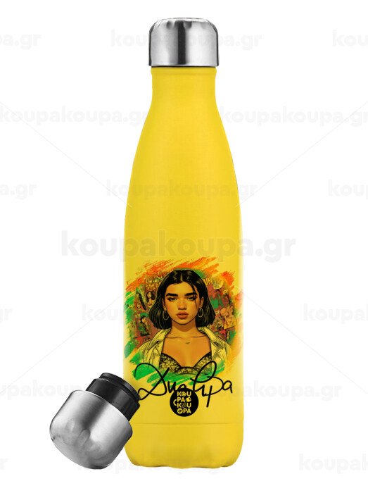 Dua lipa, Yellow Stainless Steel Metallic Thermos, double-walled, 500ml