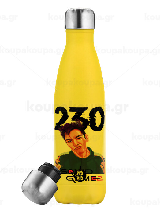 Squid game 2, Thanos 230, Yellow Stainless Steel Metallic Thermos, double-walled, 500ml