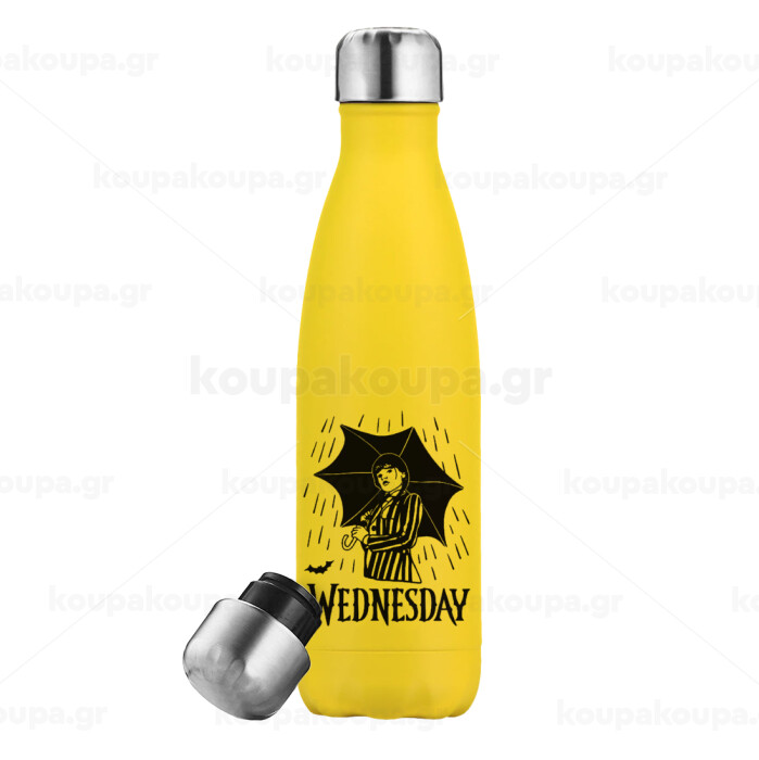 Wednesday Addams, Yellow Stainless Steel Metallic Thermos, double-walled, 500ml