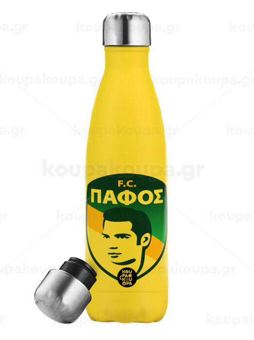 Πάφος FC, Yellow Stainless Steel Metallic Thermos, double-walled, 500ml