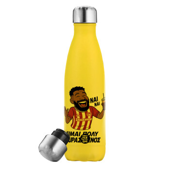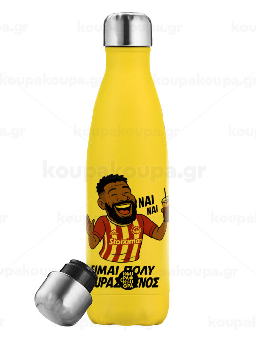 Ροντινέι, "ΠΟΛΥ ΚΟΥΡΑΣΜΕΝΟΣ", Yellow Stainless Steel Metallic Thermos, double-walled, 500ml