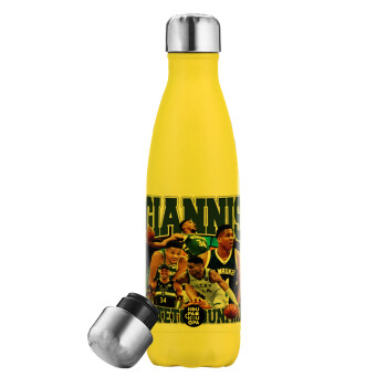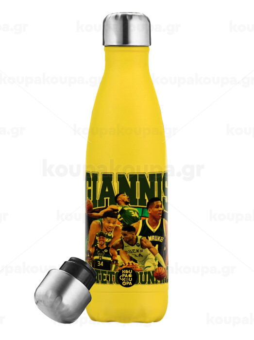 Giannis Antetokounmpo, Yellow Stainless Steel Metallic Thermos, double-walled, 500ml