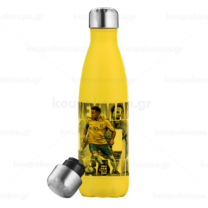 Neymar (Νεϊμάρ), Yellow Stainless Steel Metallic Thermos, double-walled, 500ml