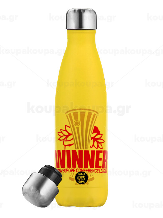 Europa Conference League WINNER, Yellow Stainless Steel Metallic Thermos, double-walled, 500ml