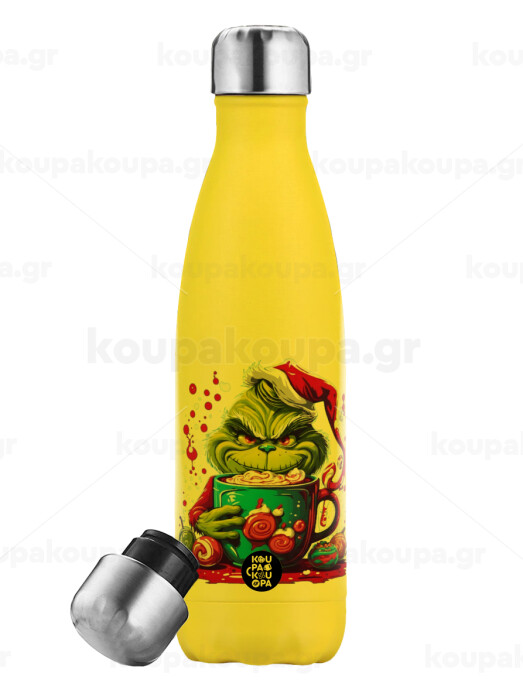 Giggling Grinchy Galore, Yellow Stainless Steel Metallic Thermos, double-walled, 500ml