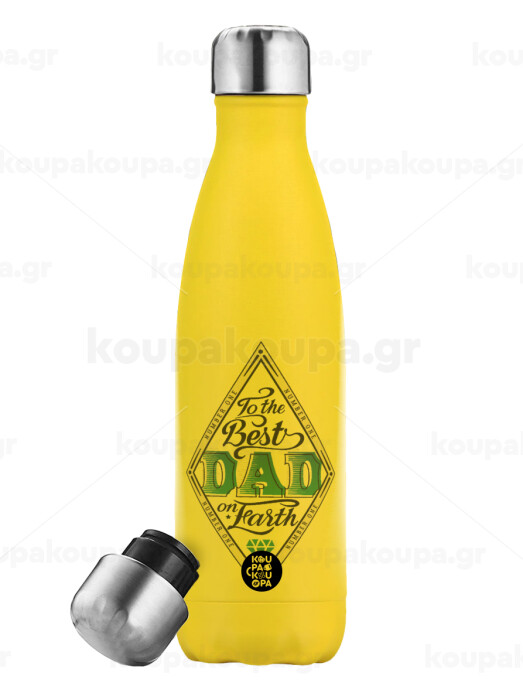 To the best DAD on earth, Yellow Stainless Steel Metallic Thermos, double-walled, 500ml