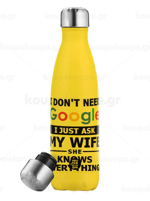 I don't need Google, just ask my WIFE, Yellow Stainless Steel Metallic Thermos, double-walled, 500ml