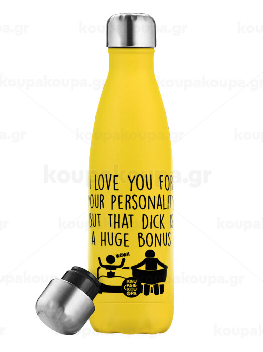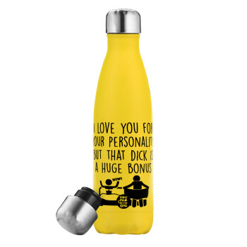 I Love You for Your Personality But that D... Is a Huge Bonus , Yellow Stainless Steel Metallic Thermos, double-walled, 500ml