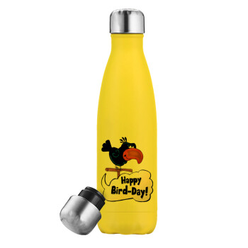 Happy Bird Day, Yellow Stainless Steel Metallic Thermos, double-walled, 500ml