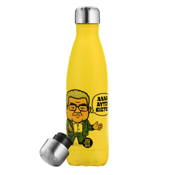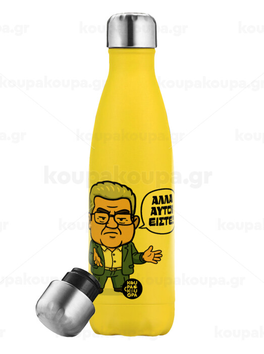 Κουτσούμπας, "Αλλά αυτοί είστε!", Yellow Stainless Steel Metallic Thermos, double-walled, 500ml