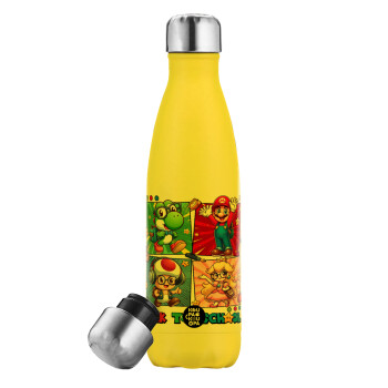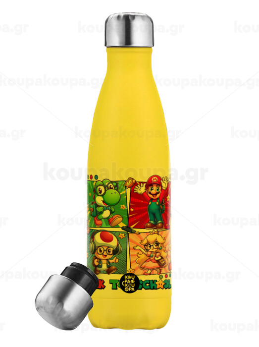 Back to the School Mario & Friends, Yellow Stainless Steel Metallic Thermos, double-walled, 500ml
