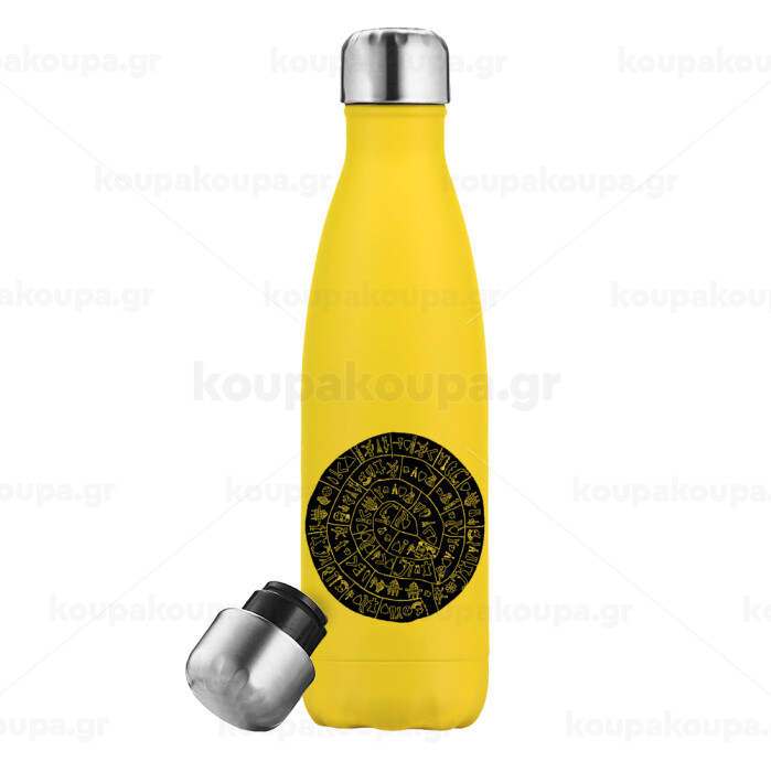 Δίσκος Φαιστού, Yellow Stainless Steel Metallic Thermos, double-walled, 500ml