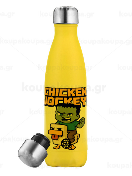 Chicken Jockey, Yellow Stainless Steel Metallic Thermos, double-walled, 500ml