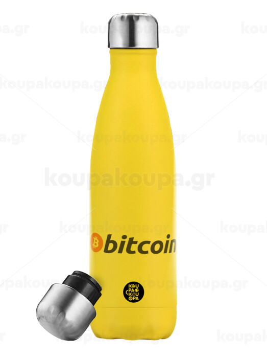 Bitcoin Crypto, Yellow Stainless Steel Metallic Thermos, double-walled, 500ml