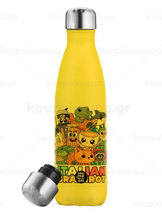 Italian Brainrot friends, Yellow Stainless Steel Metallic Thermos, double-walled, 500ml