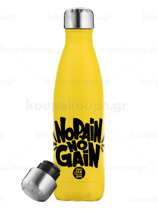 No pain no gain, Yellow Stainless Steel Metallic Thermos, double-walled, 500ml