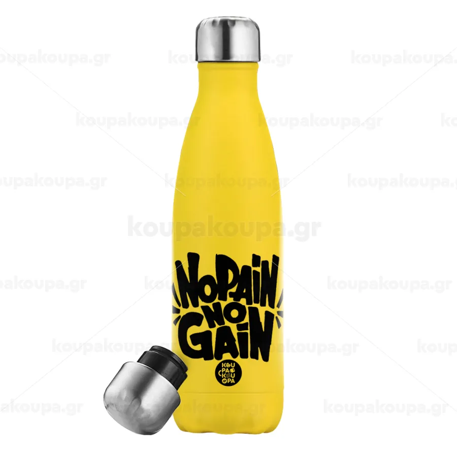 No pain no gain, Yellow Stainless Steel Metallic Thermos, double-walled, 500ml