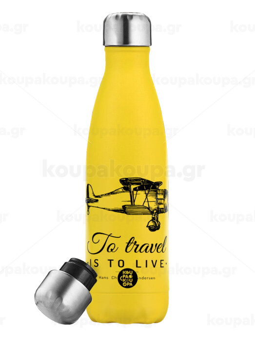 To travel is to live, Yellow Stainless Steel Metallic Thermos, double-walled, 500ml