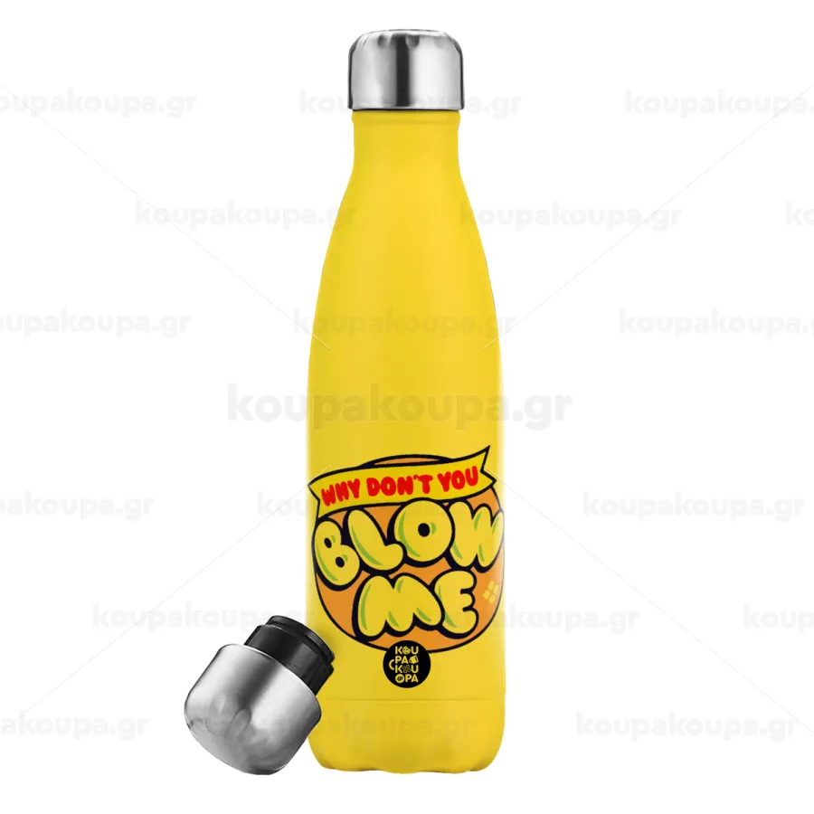 Why Don't You Blow Me Funny, Yellow Stainless Steel Metallic Thermos, double-walled, 500ml