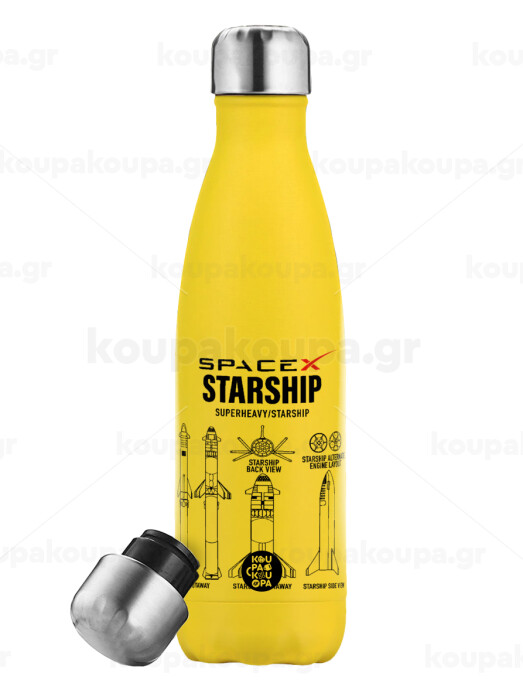 Space X, Yellow Stainless Steel Metallic Thermos, double-walled, 500ml