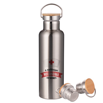 Η καλύτερη νοσοκόμα του κόσμου!!!, Stainless steel Silver with wooden lid (bamboo), double wall, 750ml