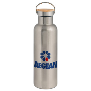 Πρατήριο καυσίμων AEGEAN, Stainless steel Silver with wooden lid (bamboo), double wall, 750ml
