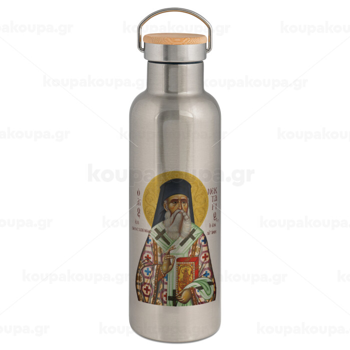 Saint Nektarios, Stainless steel Silver with wooden lid (bamboo), double wall, 750ml
