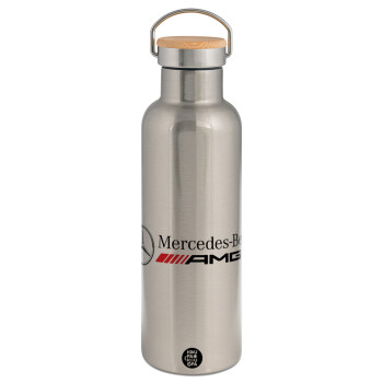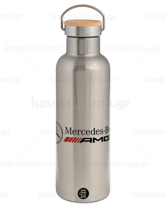 AMG Mercedes, Stainless steel Silver with wooden lid (bamboo), double wall, 750ml