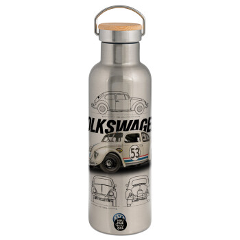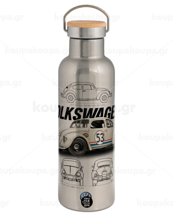 Volkswagen Beetle, Stainless steel Silver with wooden lid (bamboo), double wall, 750ml