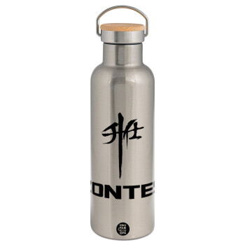ZONTES, Stainless steel Silver with wooden lid (bamboo), double wall, 750ml