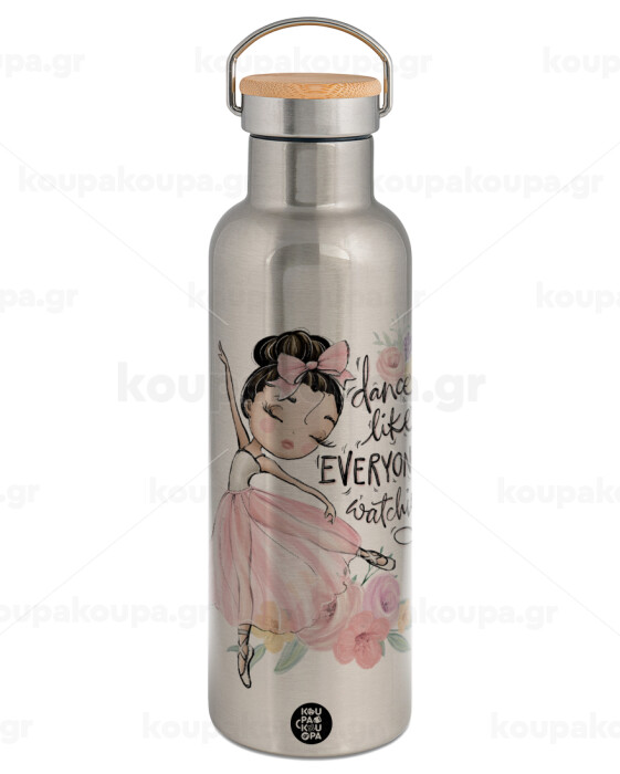 Dance Like everyone's watching, Stainless steel Silver with wooden lid (bamboo), double wall, 750ml