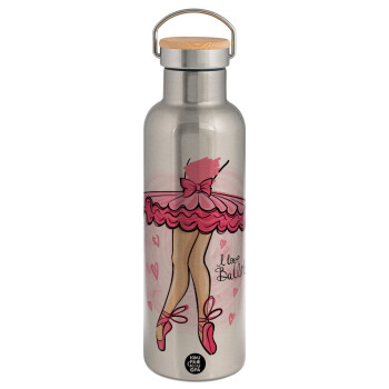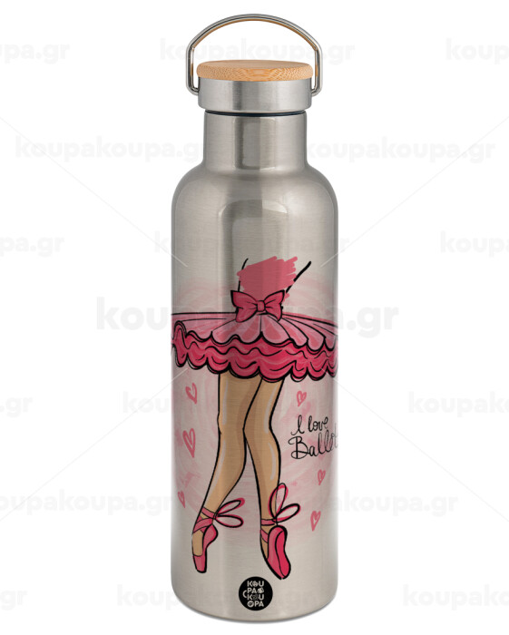 I Love Ballet, Stainless steel Silver with wooden lid (bamboo), double wall, 750ml