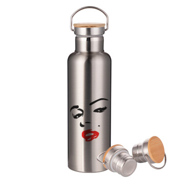 Marilyn Monroe, Stainless steel Silver with wooden lid (bamboo), double wall, 750ml