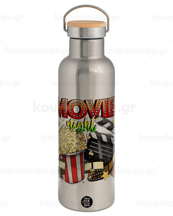 Movie night, Stainless steel Silver with wooden lid (bamboo), double wall, 750ml