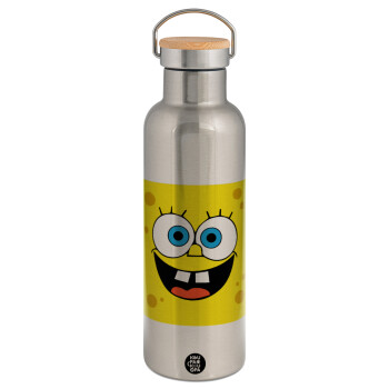 BOB, Stainless steel Silver with wooden lid (bamboo), double wall, 750ml