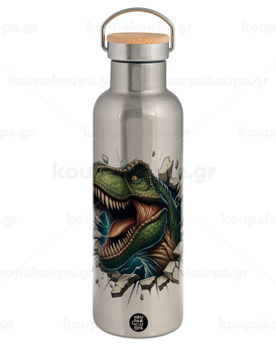 Dinosaur break wall, Stainless steel Silver with wooden lid (bamboo), double wall, 750ml