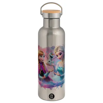 Elsa & Anna Princess, Stainless steel Silver with wooden lid (bamboo), double wall, 750ml