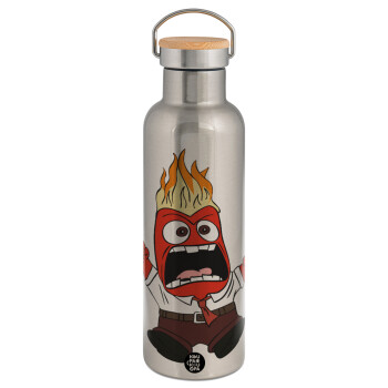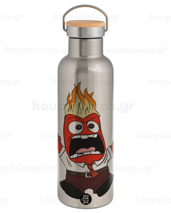 Inside Out Angry, Stainless steel Silver with wooden lid (bamboo), double wall, 750ml