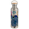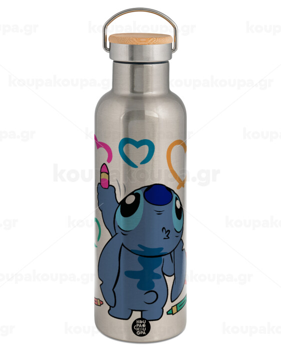 Lilo & Stitch painting, Stainless steel Silver with wooden lid (bamboo), double wall, 750ml